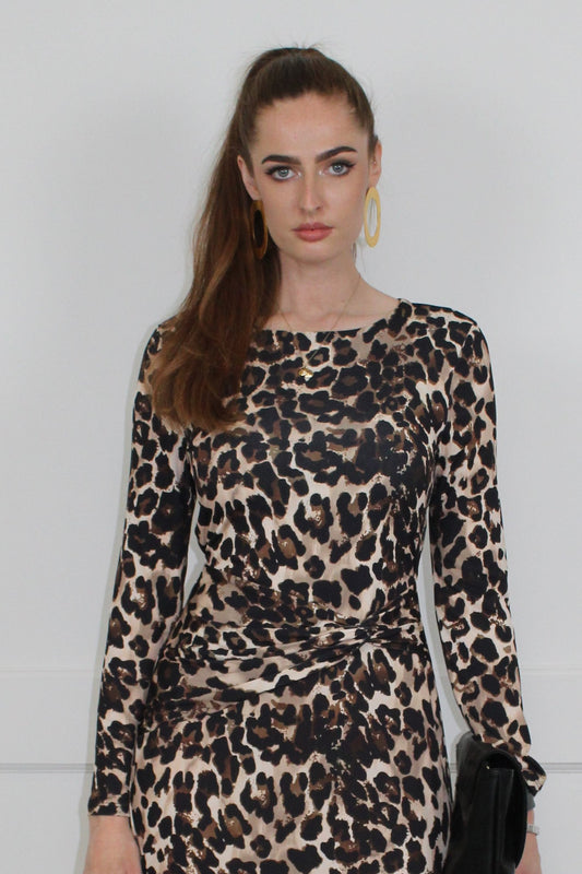 High neck sleeveless maxi dress with ruched detail in chocolate